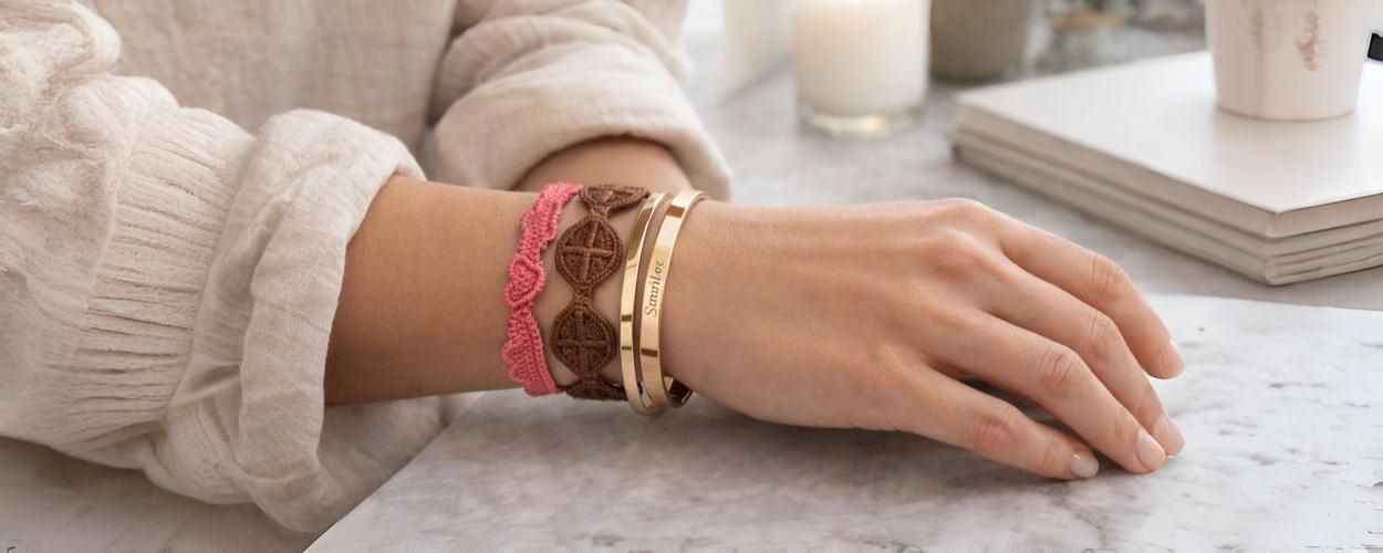 Le stacking de bracelet jonc personnalisé est une façon simple de donner du caractère à une tenue sans la surcharger. L’idée n’est pas d’empiler au hasard, mais de créer un équilibre entre volumes, matières et couleurs, pour que le poignet devienne un vrai point focal.